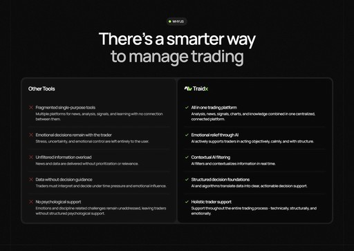 Traidx pursues the vision of simplifying trading for retail traders and freeing it from emotional decision making. We believe in a future where traders act with clarity control and inner confidence focused self directed and built for sustainable success.